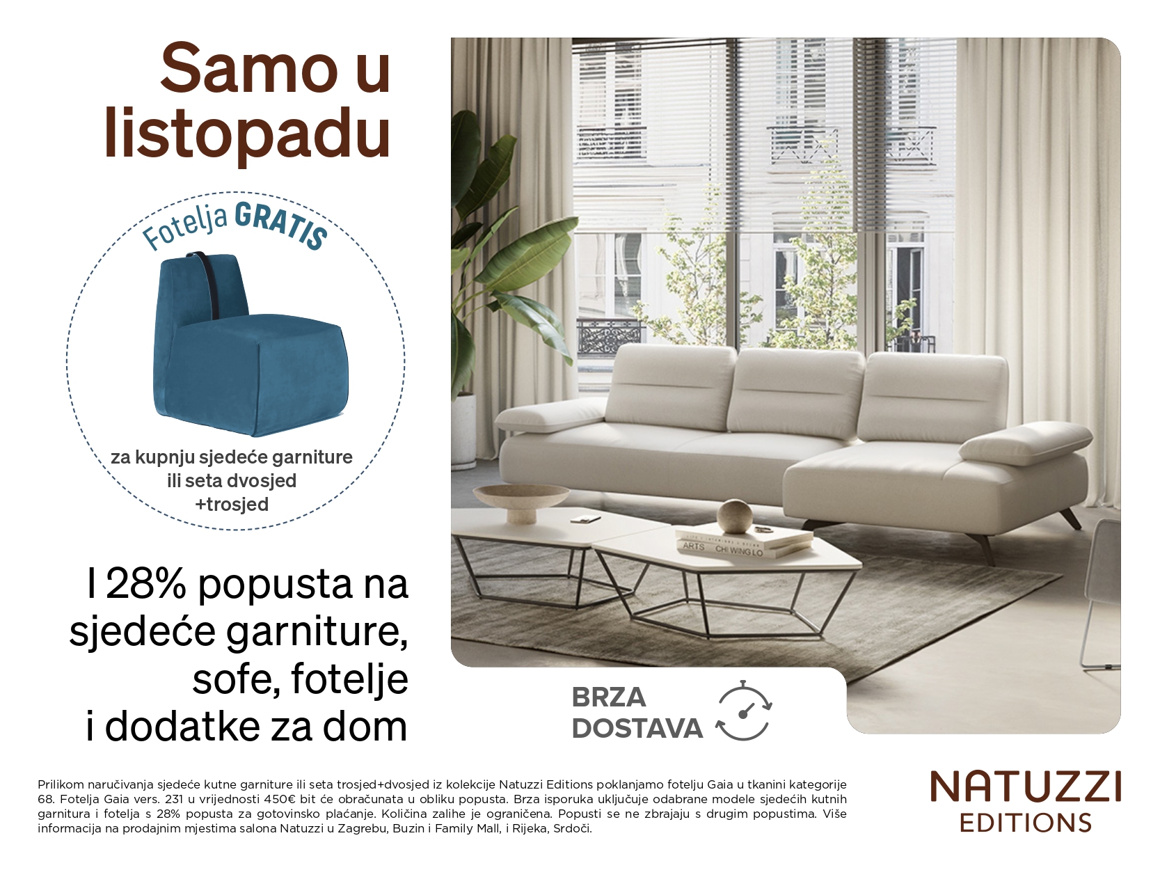 Natuzzi Editions je brand koji nudi širok izbor modela dostupnih u velikom odabiru presvlaka i dimenzija. Različite forme dizajna, moderne ili klasične, vašu će odabranu sofu učiniti dominantnim komadom dnevnog boravka. U raznolikoj ponudi pronaći ćete odgovarajući proizvod po svom ukusu i za vaš stil života.