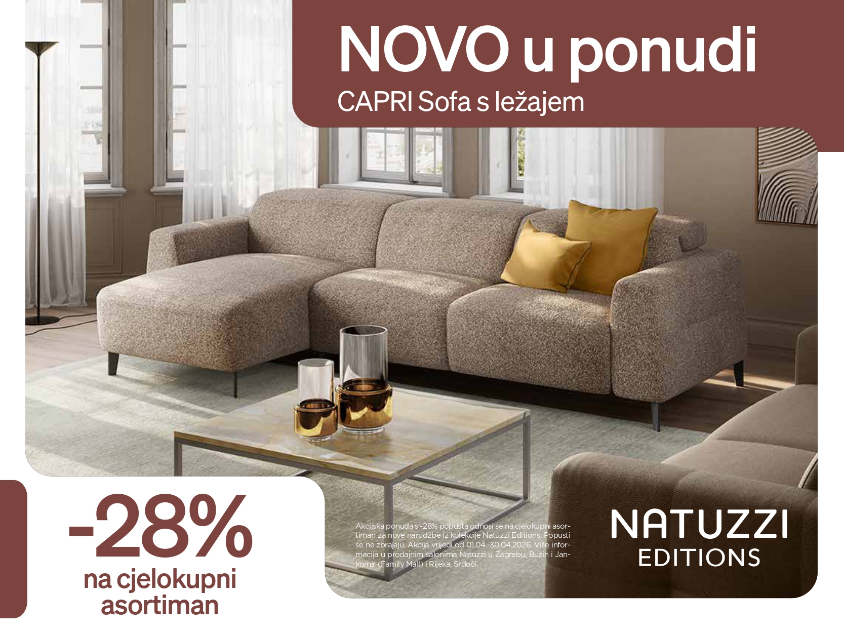 Natuzzi Editions je brand koji nudi širok izbor modela dostupnih u velikom odabiru presvlaka i dimenzija. Različite forme dizajna, moderne ili klasične, vašu će odabranu sofu učiniti dominantnim komadom dnevnog boravka. U raznolikoj ponudi pronaći ćete odgovarajući proizvod po svom ukusu i za vaš stil života.