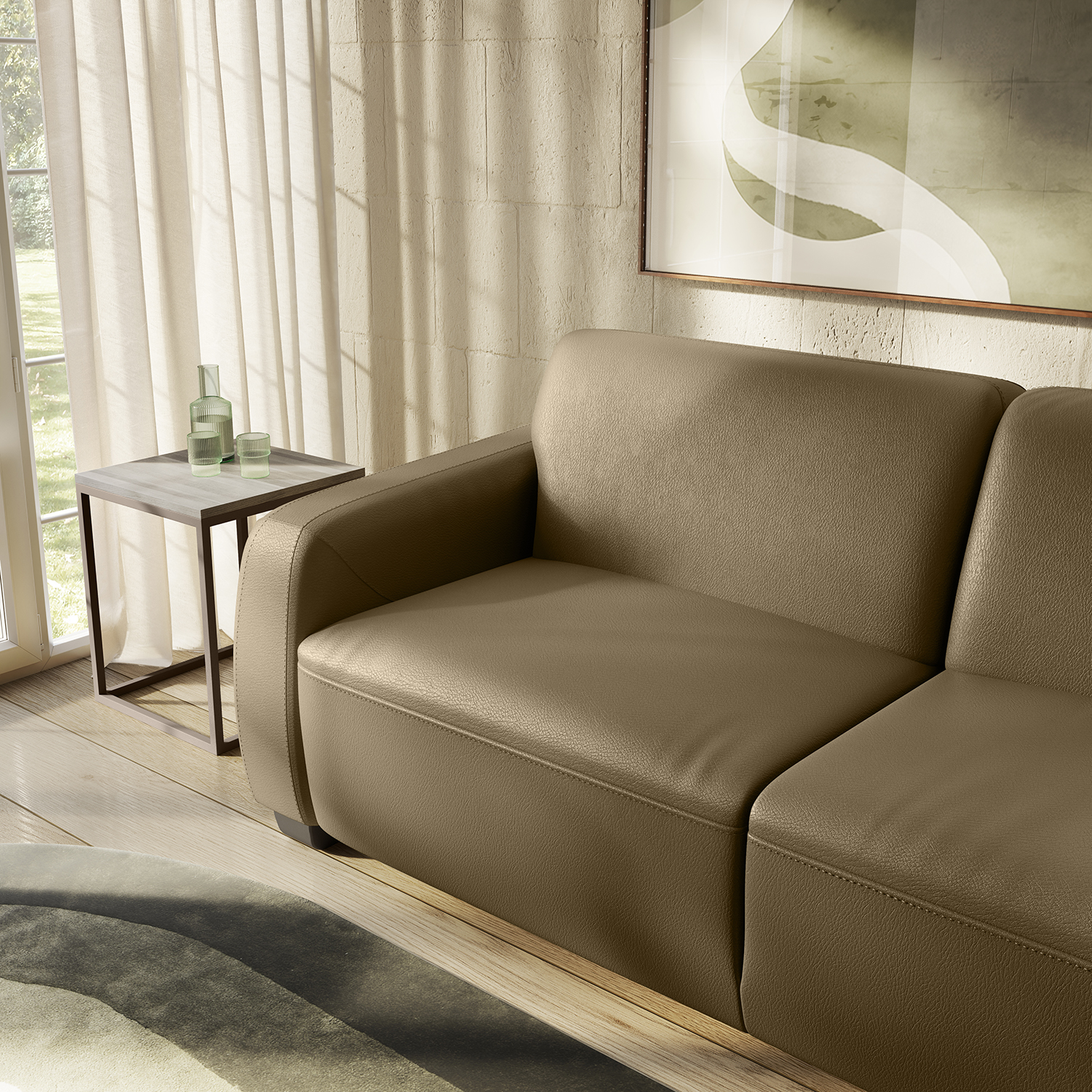 Verona je prava oaza udobnosti i mekoće. Harmonični oblici donose osjećaj mirnoće i ugode. U trenutku kada se otvori u krevet omogućit će vam odmor na madracu visine 17 cm. Dostupna je u koži ili tkanini u velikom izboru boja. Sofa je na drvenim nogama.
